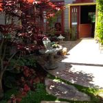 Growing are flowering attractants for butterflies, hummers, Bluebirds, Wrens, and Phoebes whose numbers are kept track of. There are blooms for bouquets, culinary herbs, dwarf and espaliered fruit trees planted along upcycled broken concrete pathways making harvest easy and do double-duty for playing ‘tag’ and ‘hide and seek’ with grandchildren.
