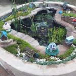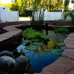 Five separate gardens capture the different types of plants. In Mikki’s succulent garden, several varieties of echeveria grow, as well as Sticks of Fire, jades, and aloes. Another garden flowers with aromatics like lavender and sage to attract and support bees and butterflies. In the native plants garden, butterfly bushes and hot lip sages mingle with other drought tolerant plants. Pond lilies and water cabbage dwell in the water garden.