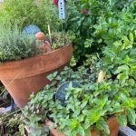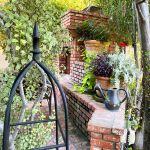Meander down brick and gravel pathways to discover lush herbs, vegetables, flowers, strawberries, and fruit trees all tucked in together without a single blade of grass.