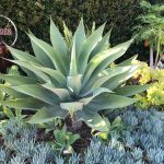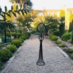 Being in Orange County, it seemed only natural to have citrus trees and as you enter the front gate, you will be greeted by a row of lemon trees. Keep going and you will find a variety of garden groupings–exotic Asian fruit trees nestled among desert plants, traditional English style trimmed boxwoods next to Italian Cypress trees, and some purely experimental ones based on the colors and textures of their foliage like the architectural Agaves next to the soft iceberg roses.
