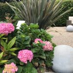 This Mediterranean house sits on a ¾ acre of land. The house and the surrounding gardens are situated around three Elm trees that are over 60 years old. The gardens began to take shape soon after the house was built 14 years ago. The landscape is divided into several areas: the front entrance garden, the side gravel garden, the Mediterranean garden, and the vegetable garden.